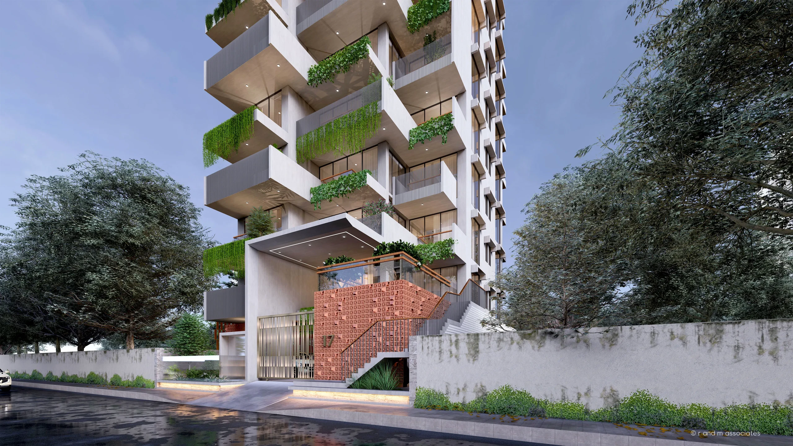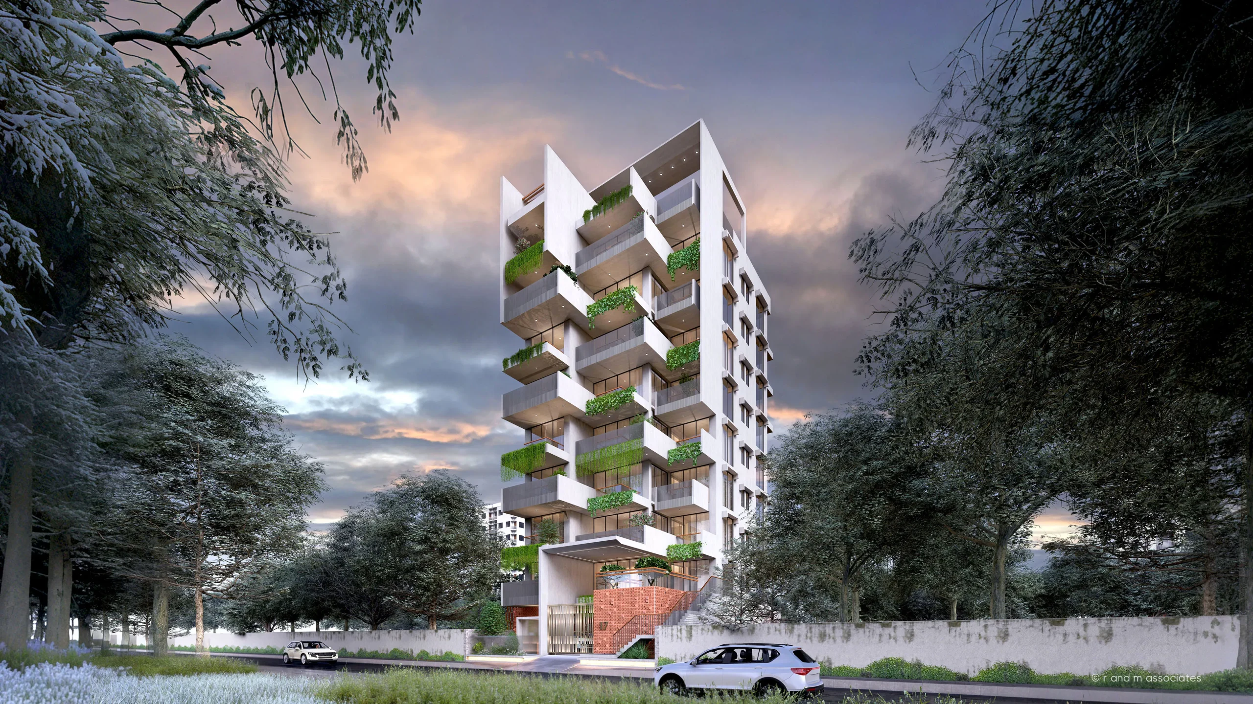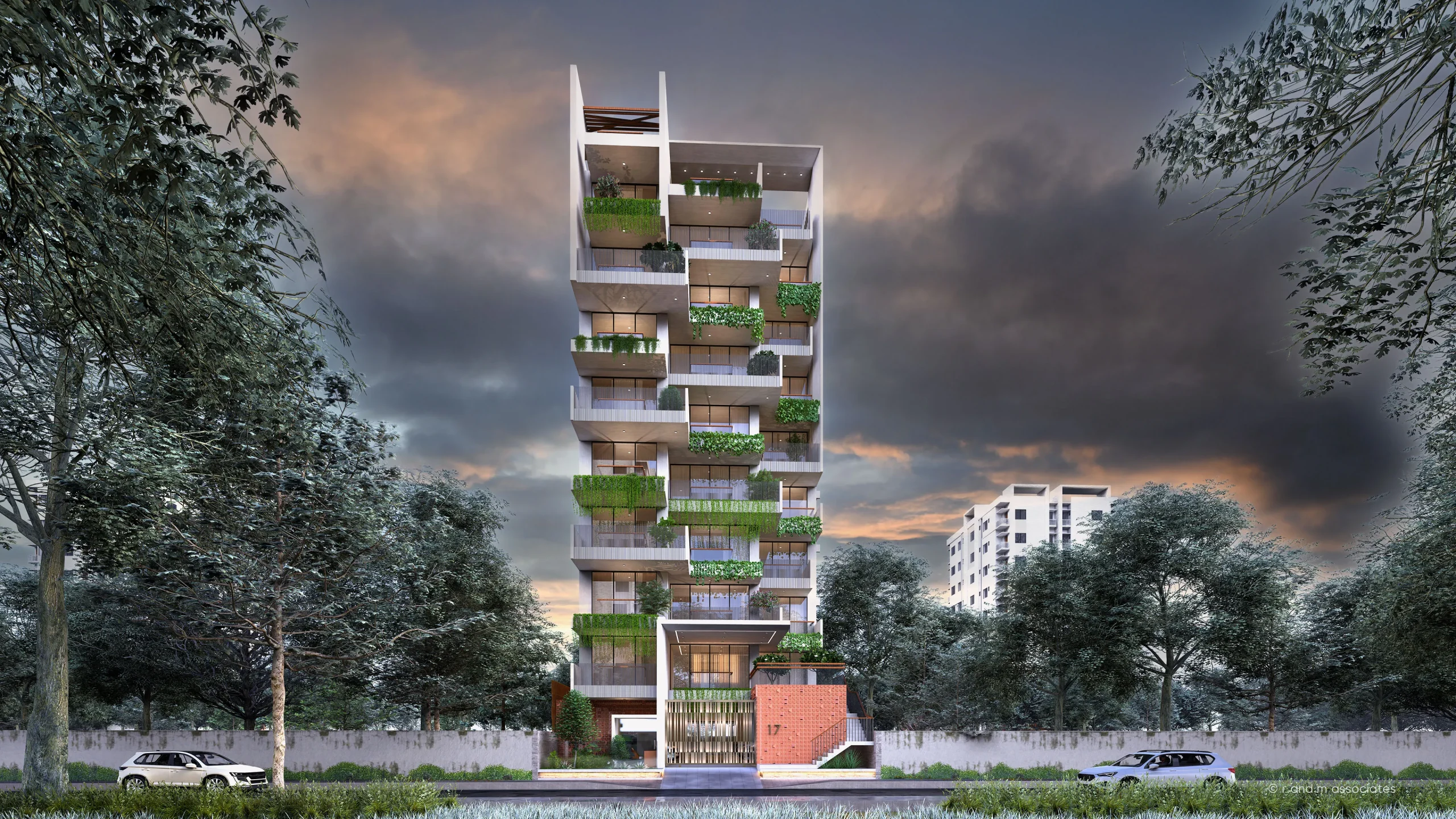 This residential project in Uttara, Sector 16 is conceived as a vertical garden home that balances urban living with nature. The architectural concept is driven by layered outdoor spaces, where the form is generated through staggered balconies.
